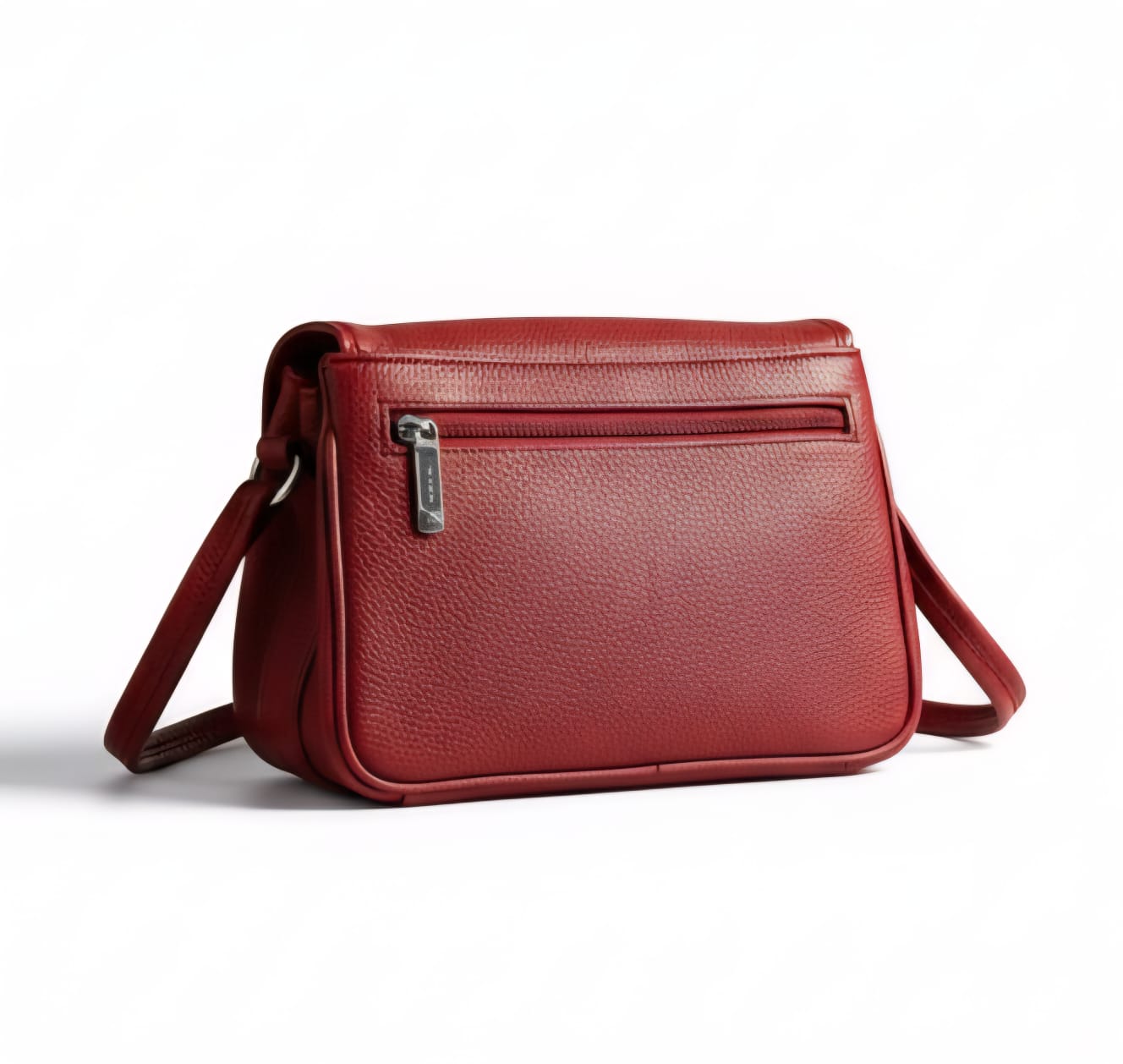 Make a bold statement with the Women’s Luxe Crossbody in striking red. Crafted from 100% genuine textured leather, this bag perfectly blends elegance and practicality. It features multiple silver-zippered compartments for effortless organization, a stylish flap-front closure for added security, and an adjustable strap for all-day comfort. Finished with a discreet back pocket and a metallic emblem, it’s the ideal companion for daily errands or casual outings, where fashion meets function.